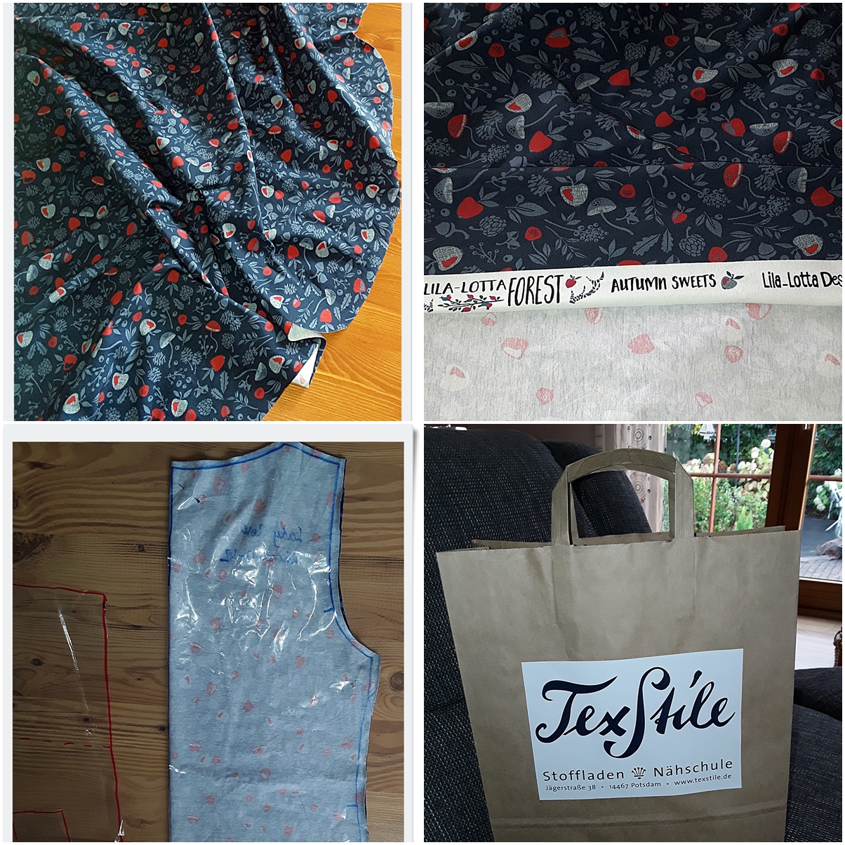 Eher ungewohnte Materialien habe ich mir von Stoff & Stil mitgebracht . Webware kaufe ich eigentlich nie für Kleidung .Aber die Walfische hatten es mir sofort angetan , obwohl ALTROSA so gar nicht meine Farbe ist .
